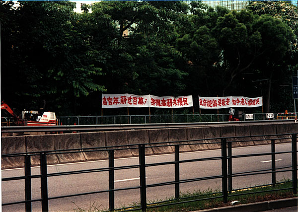 「 反 對 政 府 無 理 清 拆 草 廠 村 」 「 生 於 斯 長 於 斯 百 年 私 地 變 官 地 」 「 無 良 政 府 欺 壓 貧 民 」