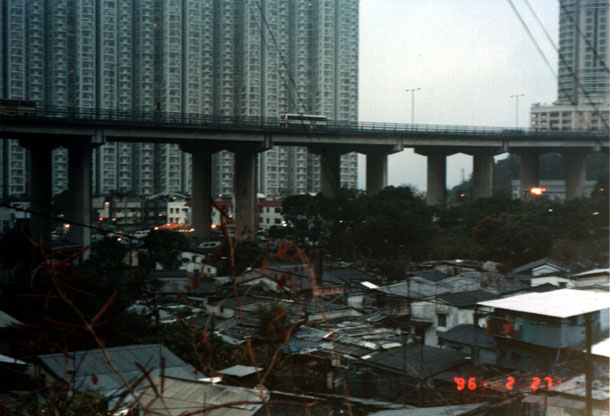 路 , 顯 得 高 高 在 上 , 不 可 一 世 。 在 下 居 住 的 村 民 , 卻 只 有 無 奈 和 擔 憂 , 擔 憂 著 一 旦 連 日 暴 雨 , 雨 水 就 只 有 積 累 , 而 不 能 排 放 。 惟 一 的 逃 避 方 法 , 原 來 就 是 要 一 般 城 市 人 一 樣 , 年 年 月 月 進 貢 大 發 展 商 , 才 可 以 到 高 高 在 上 的 大 樓 居 住 。